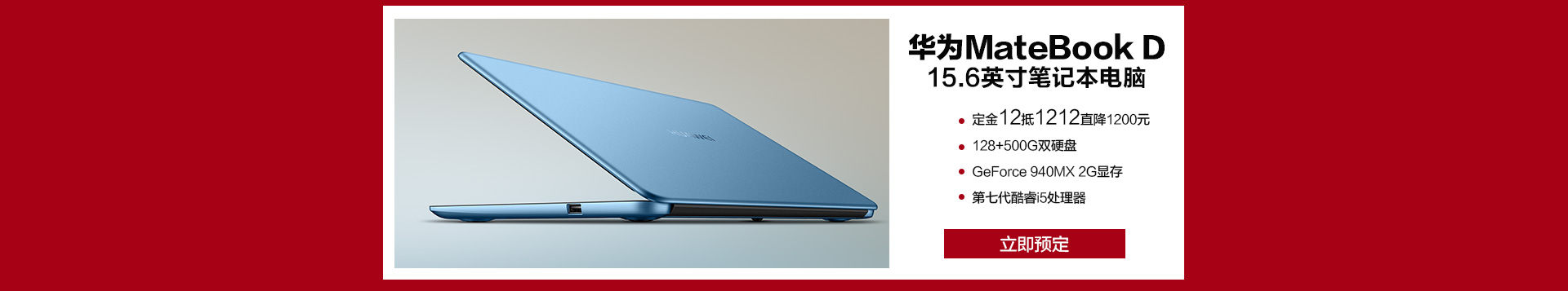 华为(HUAWEI) MateBook D 15.6英寸笔记本电脑(Intel i5 128GB+500GB 极光蓝)