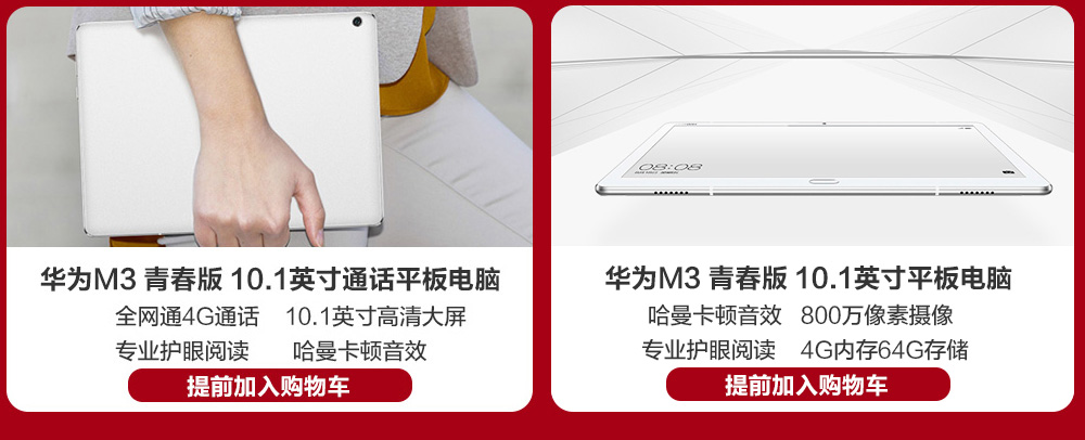 华为(HUAWEI)M3 8.4英寸通话平板电脑(4G 32G 麒麟950 2K高清屏 哈曼卡顿音效 LTE 皓月银)